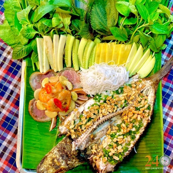 Cá lóc nướng chín thịt mềm, thớ thịt dai dai, thanh ngọt tự nhiên được rưới thêm lớp mỡ hành beo béo. Khi ăn tại quán bạn sẽ được cung cấp phần ăn đã bao gồm rau sống, bún, bánh tráng và nước chấm.